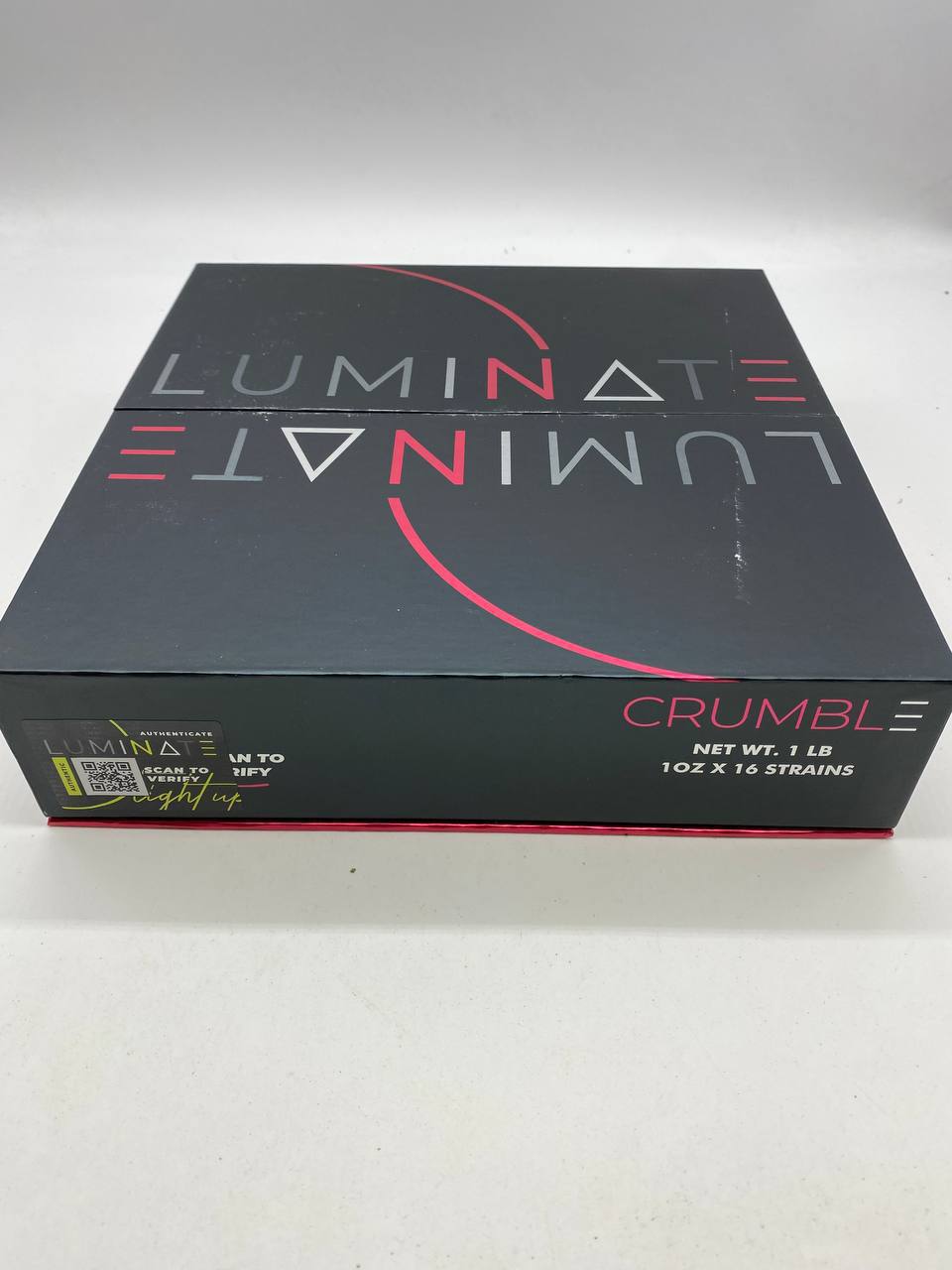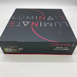 Luminate Crumble is a type of cannabis concentrate, specifically a live resin extract known for its unique texture and potent effects. Unlike other concentrates, Luminate Crumble is crafted from fresh-frozen cannabis plants, preserving the delicate terpene profile and delivering a full-spectrum experience. This ensures that you get the full entourage effect, where cannabinoids and terpenes work together synergistically to enhance your high. Luminate Crumble stands out due to its crumbly, almost cheese-like consistency, making it easy to handle and dab. It is a wax shatter crumble.